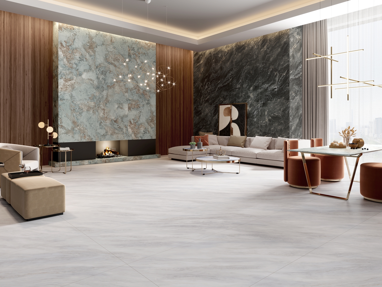 空間應(yīng)用:酒店大堂、背景墻等高端場所;室內(nèi)墻面/地面,客廳、餐廳、廚房、臥室衛(wèi)生間、陽臺(tái)、玄關(guān)、過道等