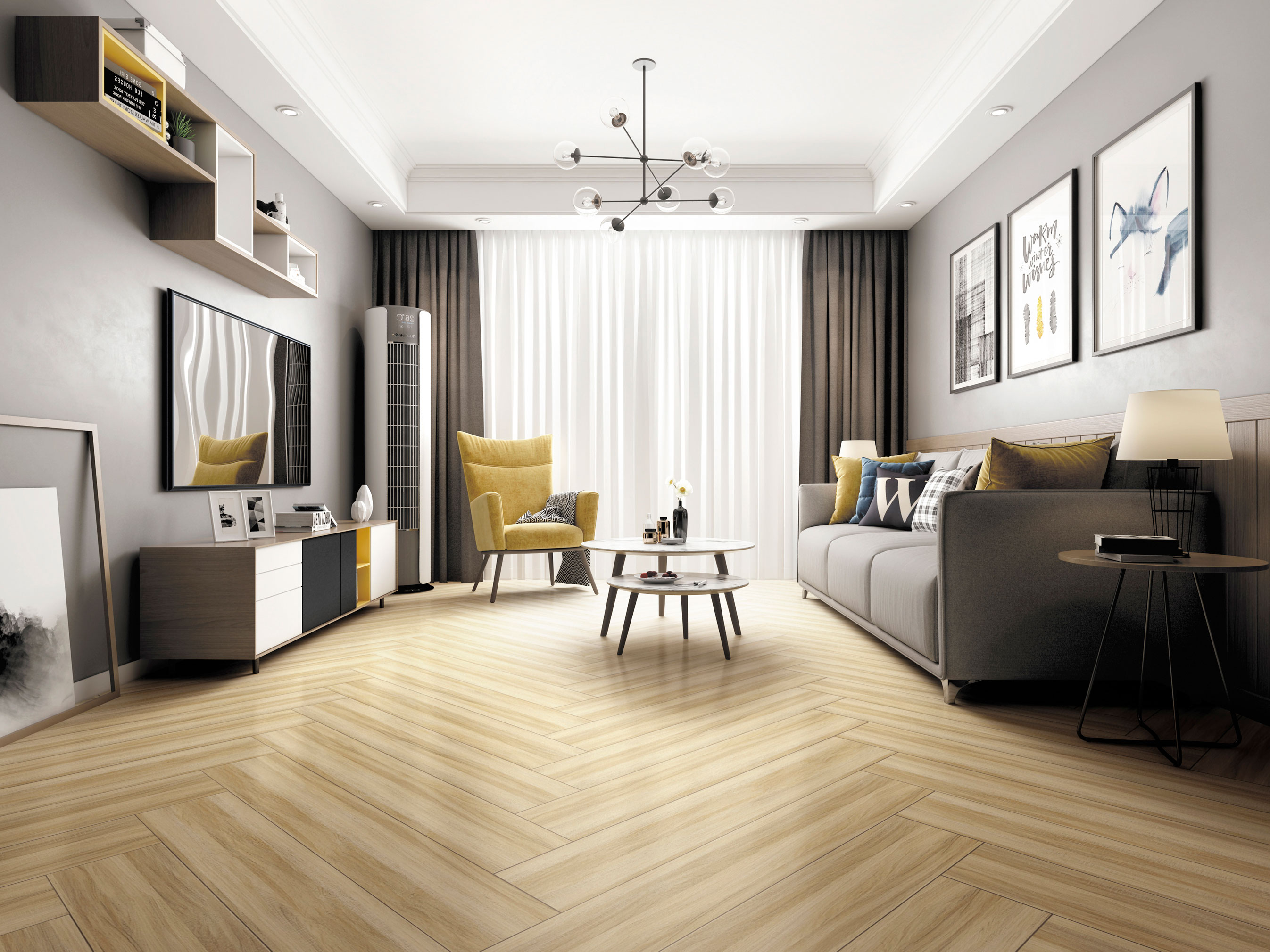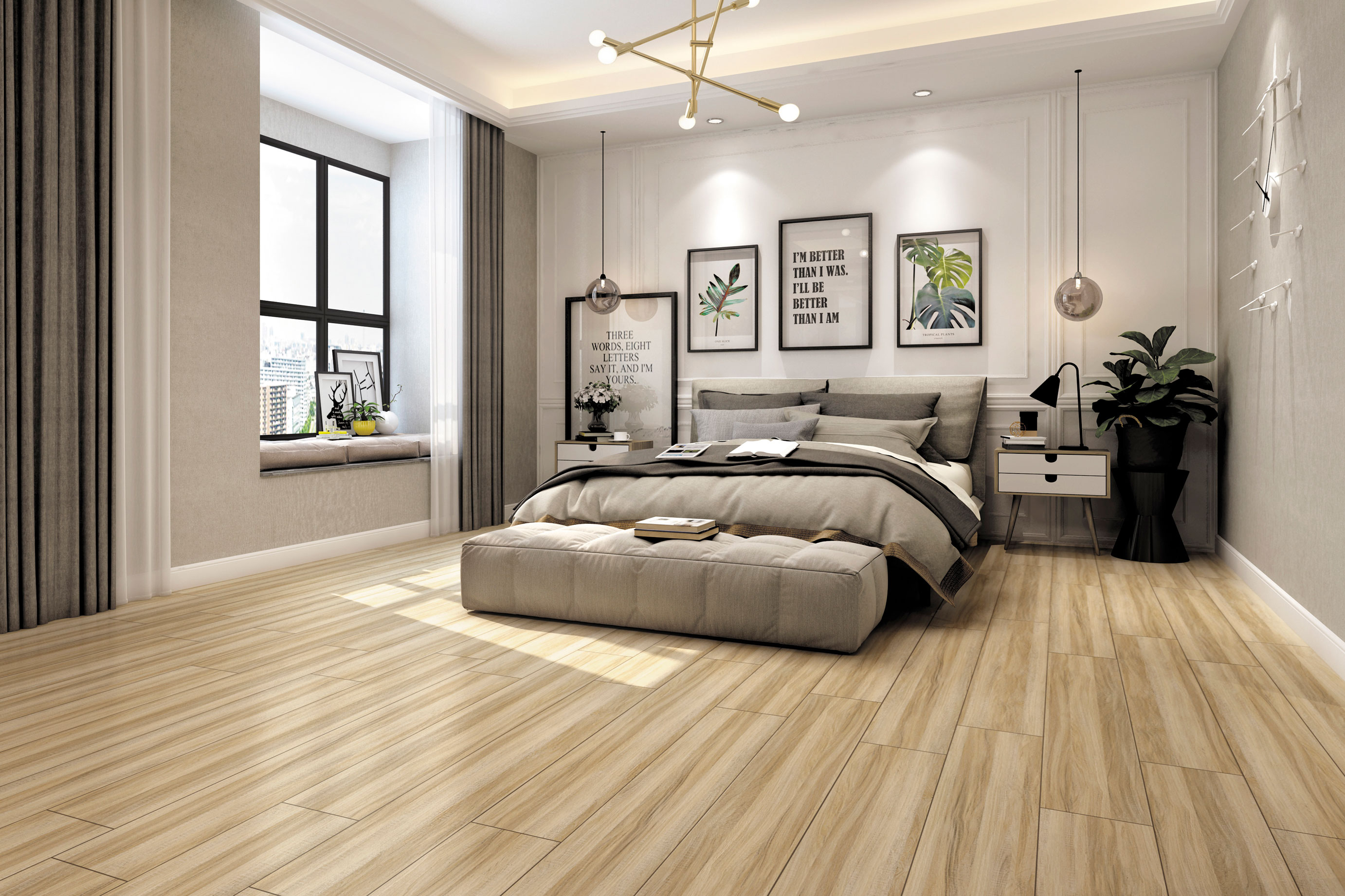 靈感源自北美珍貴樺木,直至交錯的波紋,顏色變化明顯,完美地再現了木材的紋路、質感,淡雅的米色營造清新自然的感覺。