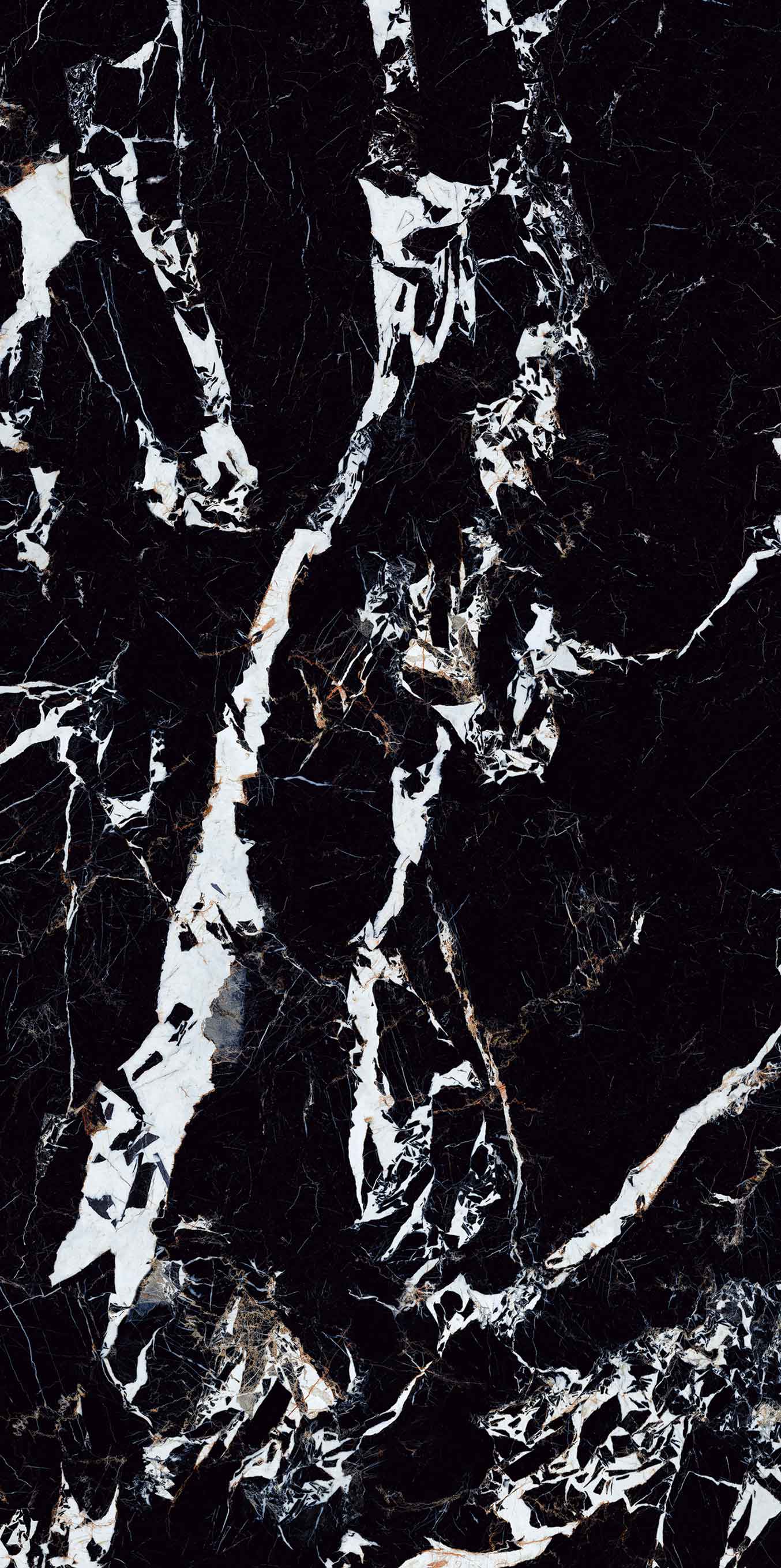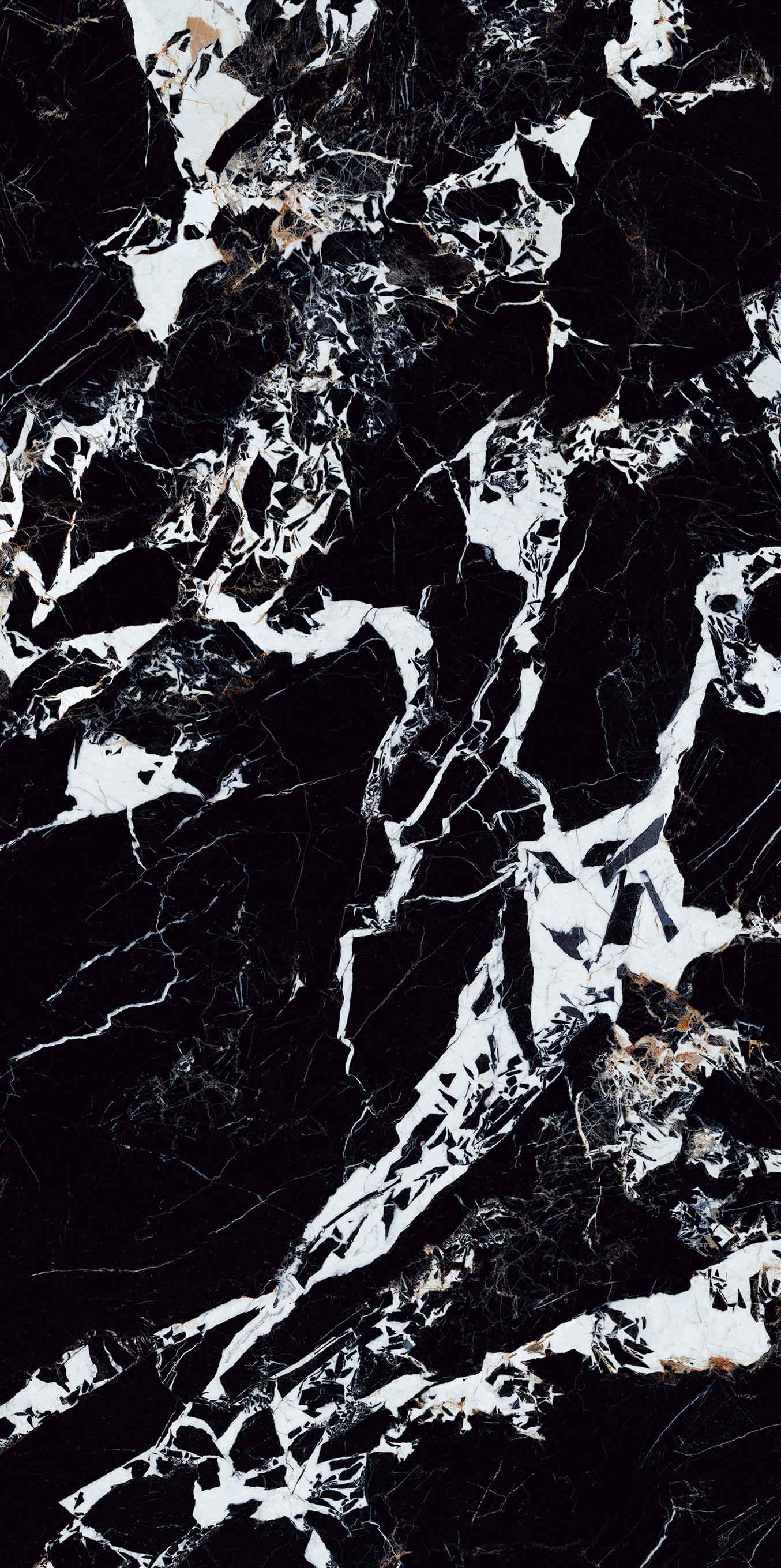 黑的濃烈,白的純粹,肆意鎏金靈動灑脫,一眼難忘。似黑色沙灘上翻滾的浪花,又似暗夜凌冽的阿爾勒閃電幻化出時尚經(jīng)典,構(gòu)成奇妙的視覺吸引力。整體鋪貼增加空間的動感,形成視覺的延伸效果。